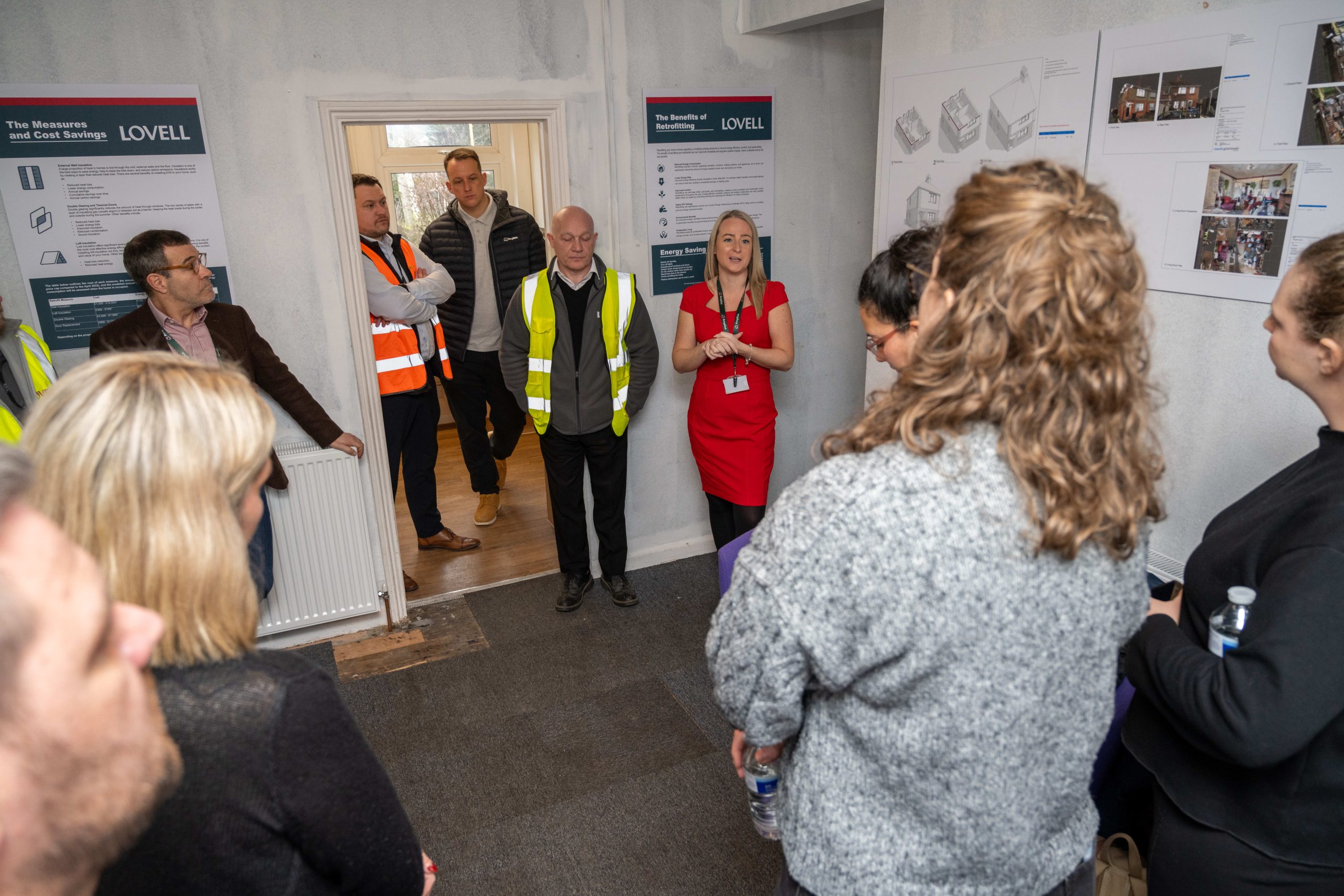 Colleagues from our partners, including the Department for Energy Security and Net Zero (DESNZ), Salix, Lovell, Henman Dunn and Aico, visited our show home to see the work being done to improve the energy efficiency of our homes.